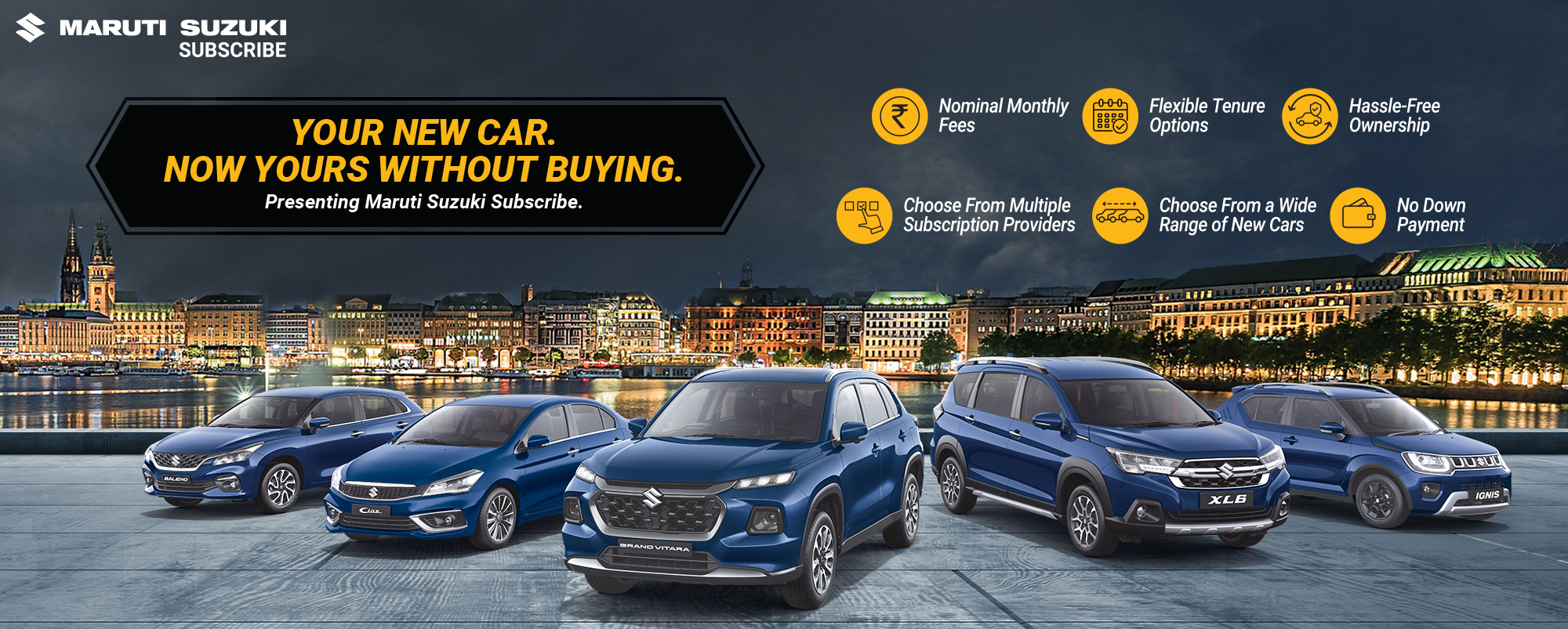 Maruti Suzuki Subscribe enables all customers to enjoy driving their preferred Maruti Suzuki cars without having to deal with all the financial responsibilities that come with owning a car.All you need to do is opt for a monthly subscription plan at a fixed monthly fee, which includes the routine maintenance and insurance costs, and choose a flexible tenure. At Sky Automobiles in, , Ganjam, all Hatchback, Sedan, SUV, the MUV models line-up includes Baleno, Invicto, EVitara, Jimny, Ciaz, Ignis, Fronx, Grand Vitara, XL6. Here, you will enjoy Maruti Suzuki Subscribe benefits such as: